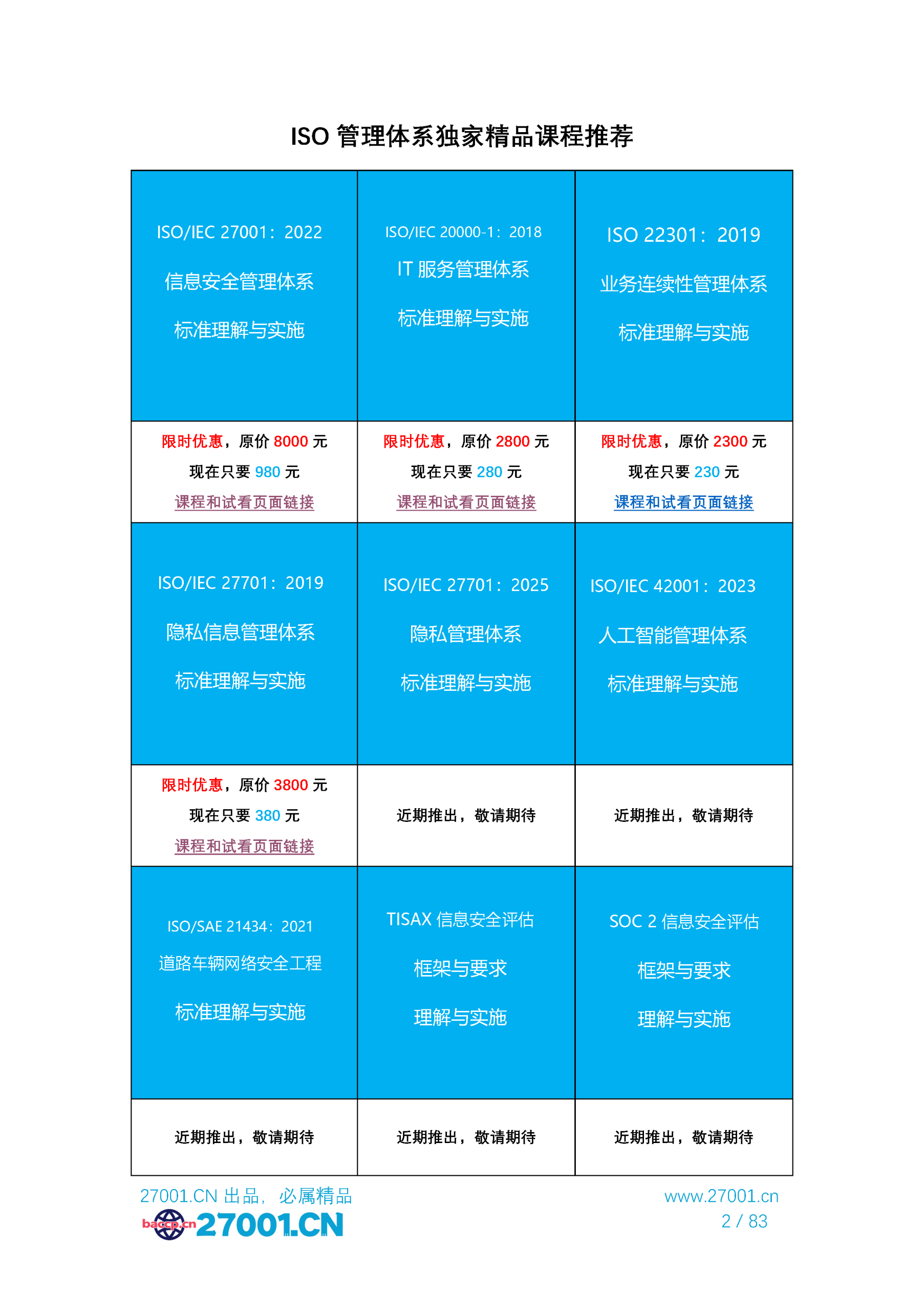 独家服务:ISO/IEC 27001: 2022全新全套文件提供和使用指导